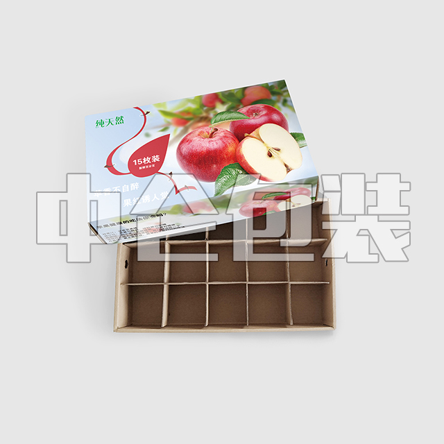 此包裝盒又稱(chēng)為上下蓋盒,多用于9個(gè)、12個(gè)、15個(gè)裝,在10斤以上的蘋(píng)果,成本上會(huì)略高一些,材料需要選擇特硬加強(qiáng)的瓦楞紙。